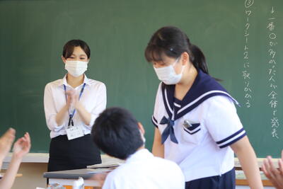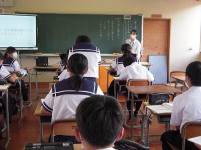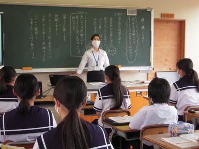 6月24日(月)から7月5日(金)まで教育実習に来られていました。7月5日(金)には、1年生国語の授業をされました。生徒一人一人の学習の様子を把握しながら、タイミング良く声かけをされる姿が印象的でした。