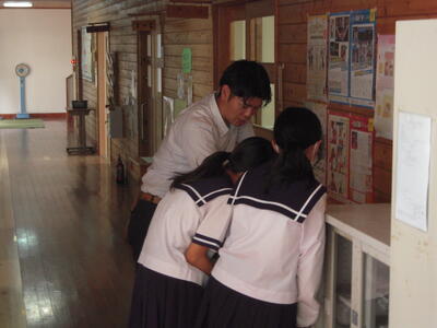 9月13日(金)に本校で行われる「西臼杵地区中学校英語暗唱・弁論大会」の弁論の部出場に向けて勉強している生徒を見つけました。出場する全員が一緒に勉強しています。もちろん、英語科の関先生の指導のもとです。