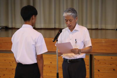 今日で1学期が終わりました。1年生は69日、2・3年生は71日、登校日がありました。この1学期には、入学式、始業式、体育大会、修学旅行、日之影探訪、近未来会議中間発表会など、多くの行事がありました。一つ一つの行事を通して、確実に成長する姿がありました。また、毎日の授業を通して、「できなかったことができるようになった」「分からなかったことが分かるようになった」姿も目にしました。可能性無限大の子どもたちです。学校では学ぶことができないことを家庭や地域等で学び、2学期始業式では、一段と成長した姿を楽しみにしています。