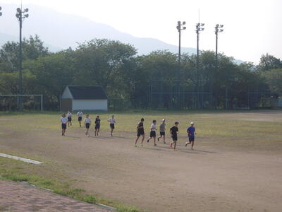 暑い日差しが照りつける中、熱中症にならないよう休憩や水分補給を適宜取りながら、部員、先生も頑張っています。