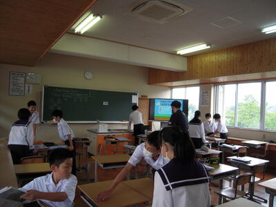 職員室で英語科の先生とALTが何やら、一生懸命、頭をひねっています。しばらく経つと、楽しそうにゲームを始めました。とても楽しそうです。