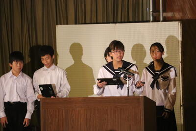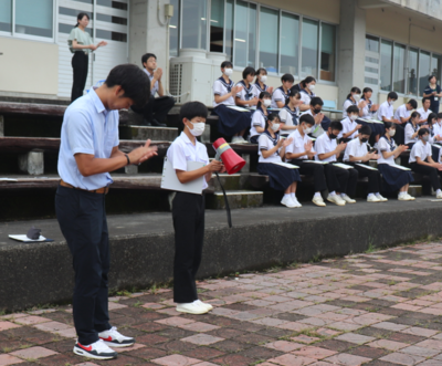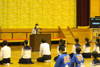 会の進行は、全校副生活整備副委員長の2年生 松本青龍さんが行いました。