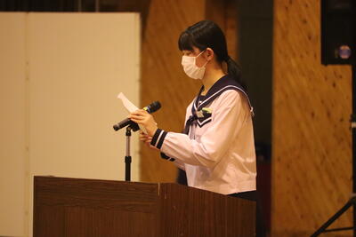 生徒を代表して、保体給食委員長の梅田大虎くんが「友達が何か困っていたり、助けを求めていたりするときには話を聞いて、一緒に解決してあげられるような存在になりたいと思いました。」と感想を述べました。
