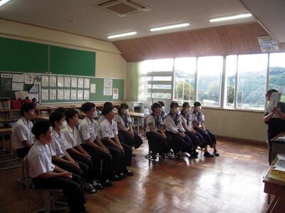 1・2年生を対象に、「読み聞かせ」がありました。この「読み聞かせ」は、生徒にとって何か特別な世界が広がるようで、没頭して聞いています。月に1回の「読み聞かせ」は、とても楽しみな時間です。