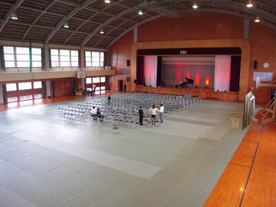 本日、第29回宮崎国際音楽祭 徳永二男 ふれあいキャラバンコンサートに向けて、準備が着々と整っています。町内小・中学生と一般観客が来場予定です。