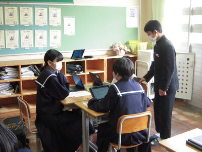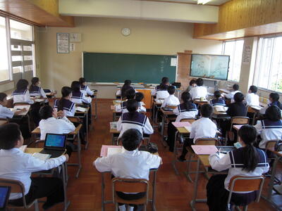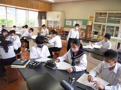 今日は、朝から雨が降り町内の一部では停電があったようでした。中学校の生徒の皆さんは、停電も無くいつも通りに学校生活を送っています。
