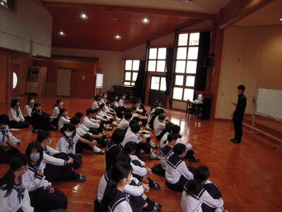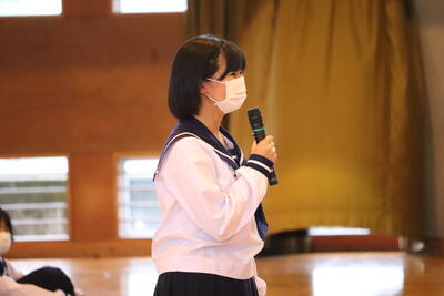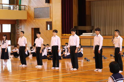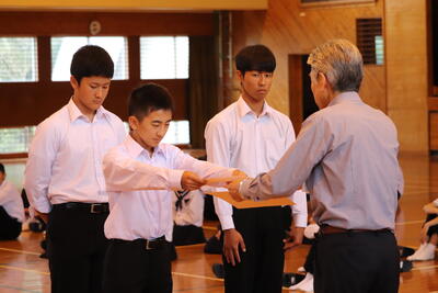 西臼杵地区中学校総合体育大会選手激励式を行いました。その大会には、陸上部、野球部、ソフトテニス部が出場します。各部活動のキャプテンがその大会にかける想いを表現してくれました。全校保体委員長が激励の言葉を贈ってくれました。