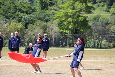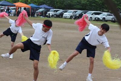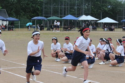 体育大会の見物の一つに「団ダンス」があります。子どもがダンスを考え、団長や副団長、リーダー、ダンスが得意な子どもが中心となってダンスを作り上げます。「右足は・・・。その時、左手は・・・。」などと説明はするものの、体がついていかず・・・、というシーンも見られます。しかし、学年関係なく笑顔と笑い声が絶えない貴重な時間となっています。がんばれ、赤団・白団。