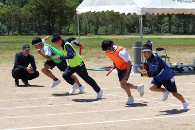 男子4×100MR 第1位 春田 蒼史(3) 中川 笑空(2) 興梠 真人(3) 鶴留 大雅(3)49"02