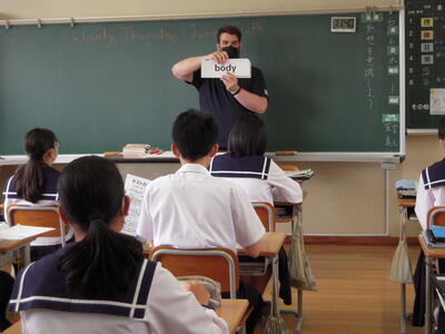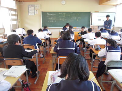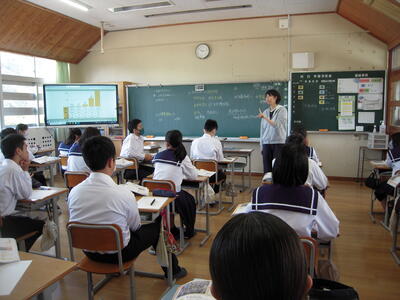 日之影中学校には、1名のALTが配置されています。英語の授業はもちろんのこと、学校生活全てにALTの先生が活躍されています。日常会話を楽しむ生徒が多くいます。