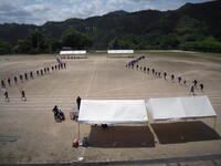 日之影中学校の伝統的な体育大会プログラムの一つに「花輪棒体操」があります。その様子を連続写真でお届けします。