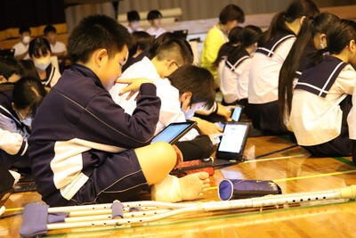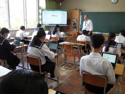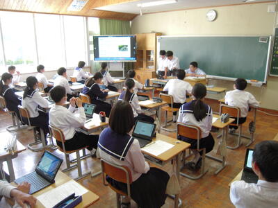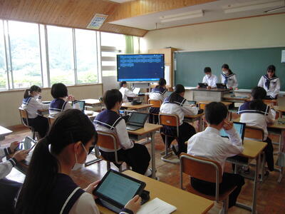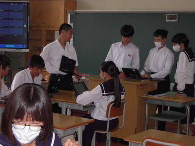 5月30日(木)に生徒総会が実施予定です。その生徒総会でもタブレット端末を活用します。もちろん、学級での話し合いでも、それぞれがタブレット端末を使って自分の意見を主張します。1年生も既に慣れて使っています。
