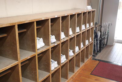 靴箱に靴を入れる時には、かかとを靴箱に揃えて入れます。
