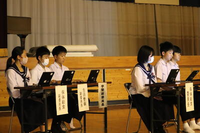 本日、生徒総会を行いました。昨年度の活動報告を行い、その後、今年度のスローガンを決定しました。
