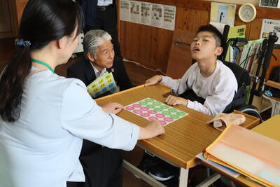 今日は、子どもの成長の様子を見たり、先生方の指導への支援をしたりする機会として、学校支援訪問がありました。そのために、町教育委員会、北部教育事務所の方々のご支援をいただきました。午前は、授業参観、午後は研究協議会(意見交換など)を行いました。