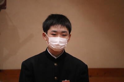 歓迎の言葉では、生徒会を代表して、飯干 蔵人さん(3年生)が学校生活や行事について、分かりやすく、優しい言葉でお話をしました。