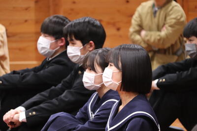 県立高校一般入試を終えた3年生は、一変した表情で登校して来ました。合格発表や受験がある生徒がいますが、卒業式に向けて着実に準備が進んでいます。まずは、卒業式の歌の練習です。
