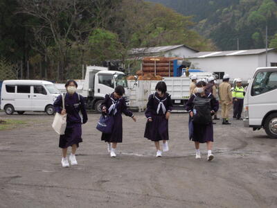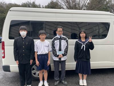 多くの生徒の皆さんは、日頃からこのスクールバスを利用して通学しています。また、生徒が町内外に出かける校外活動を行う時には、必ず、このスクールバスを利用しています。その「感謝の気持ちを言葉で伝える大切な機会」が、このスクールバス感謝集会です。