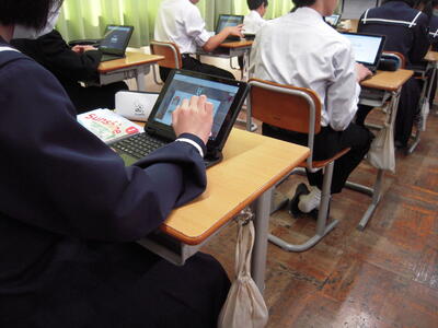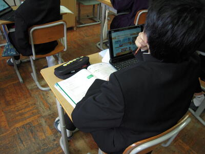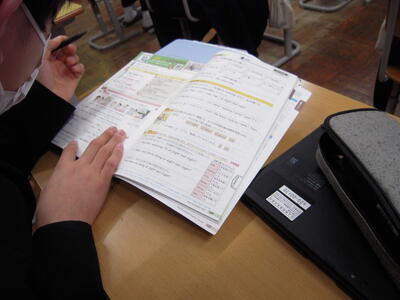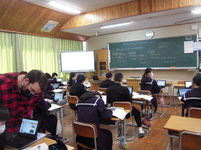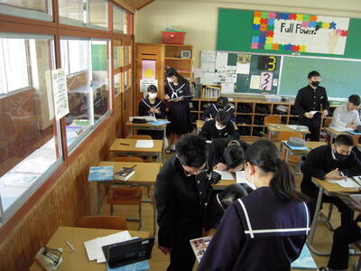 1年生は英語の授業です。英作文を一生懸命作っています。