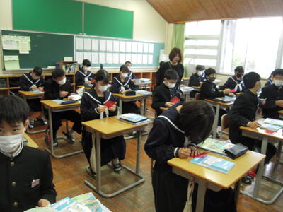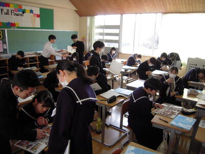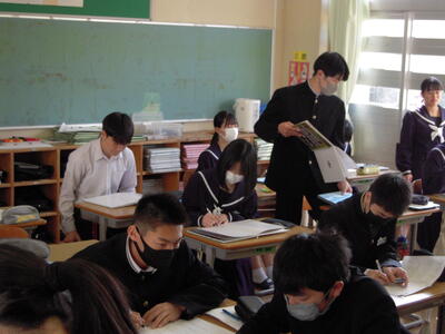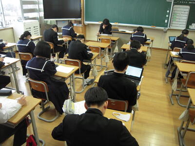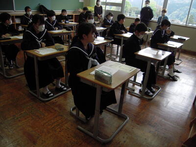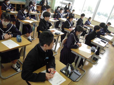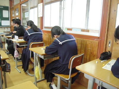 今日、明日、県立高等学校一般入試が実施されます。本校からの受験生は全員、体調もよく、元気に会場に到着しています。受験に挑んでいる級友の合格を祈るかのように、教室に残った3年生は、一生懸命、勉強に励んでいます。