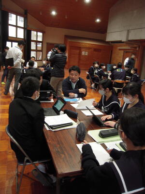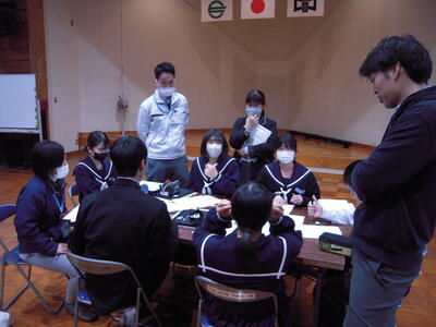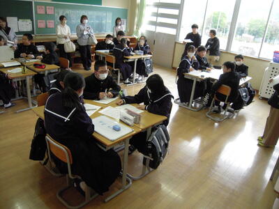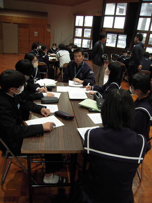 2年生「総合的な学習」は、新たなステージである「探究学習」に向け始動しました。その探究学習の内容をより高めるため、町役場の5名のメンターをお迎えしました。今回探究のテーマは、「お店」「イベント」「遊び場・観光」「交通」です。始まったばかりで試行錯誤中ですが、そのプロセスこそが大切な学びとなります。この学びを通して、ひとまわりもふたまわりも大きく成長して欲しいものです。