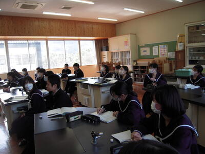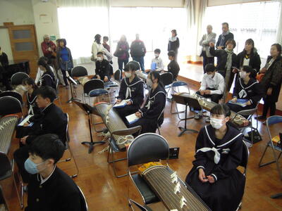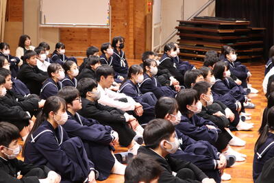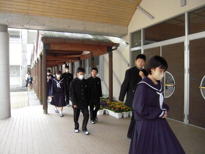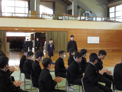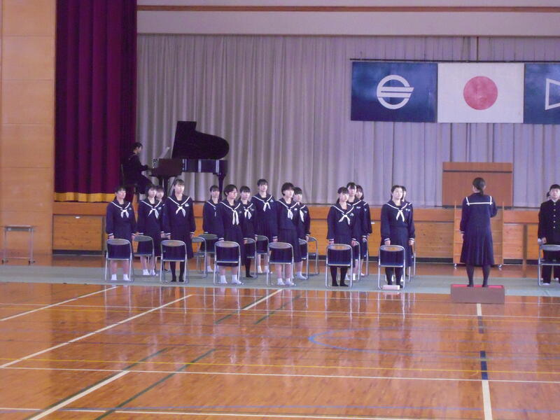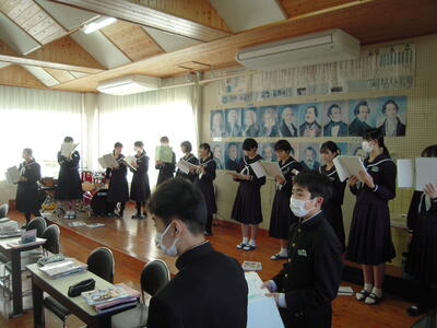 県立高校一般入試を終えた3年生は、一変した表情で登校して来ました。合格発表や受験がある生徒がいますが、卒業式に向けて着実に準備が進んでいます。まずは、卒業式の歌の練習です。