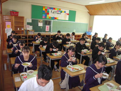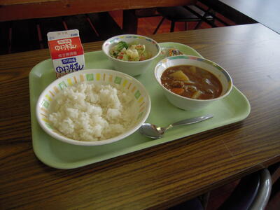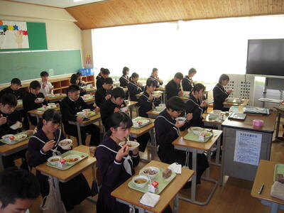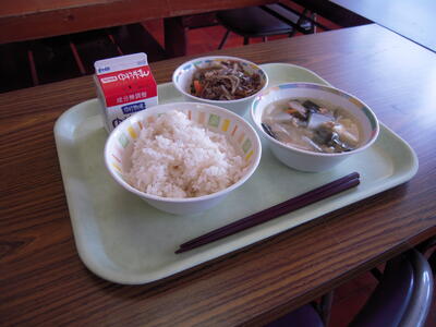 中学生になって初めて食べる給食です。給食の量は小学校と比較すると、多くなっていると思います。