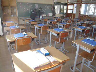 日之影中学校の伝統の一つに「揃える」があります。1年生教室を通りかかったので教室を覗いてみると写真とおりでした。また、トイレも覗いてみると写真のとおりでした。