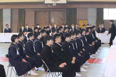 3月5日(火)6日(水)はいよいよ県立高等学校一般入試です。この日に向けて、寸暇を惜しんで受験勉強に励んできました。先に、県立高等学校推薦入試で内定通知をいただいた子ども、私立高等学校、国立高等専門学校の合格通知をいただいた子どもも一緒になって受験勉強に励んできました。今日は、県立高等学校一般入試事前指導が行われました。一人一人の表情から受験への気持ちが伝わってきます。頑張れ!!