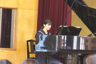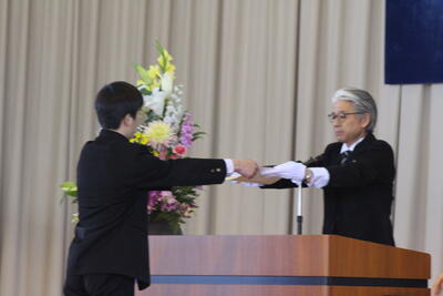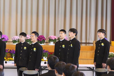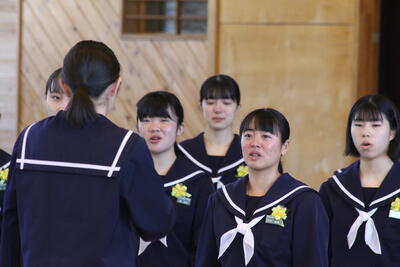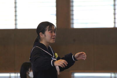 校歌斉唱では、卒業生 山口 心菜さんが指揮をしました。