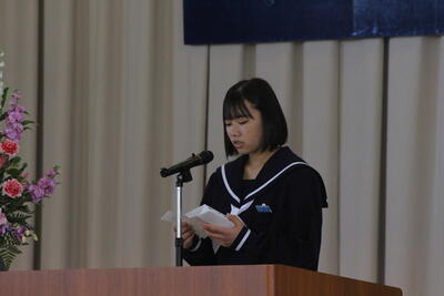 新入生誓いの言葉では、新入生を代表して、工藤 天愛さん(1年生)がしなやかな言葉の中に力強い決意を表現しました。