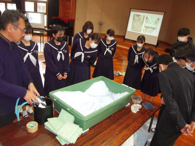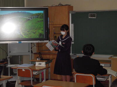 1年生は、五ヶ瀬川の流域治水について学習をしました。講師に、入江先生(宮崎大学教授)、成松様・竹下様(国土交通省)をお招きし、五ヶ瀬町・高千穂町・日之影町・延岡市を流れる五ヶ瀬川について学習しました。治水をどのように進めるのか、一人一人がしっかり考える機会となりました。探究学習の大切な一歩を踏み出しました。