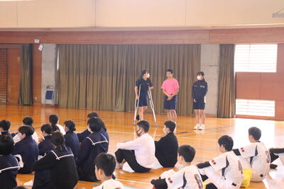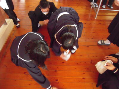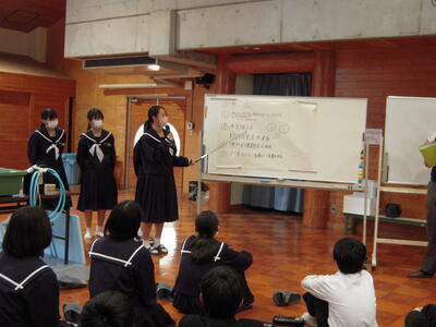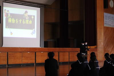 新入生に学校生活を紹介することを目的として、昨日の10:35から、生徒会役員が中心となりオリエンテーションを行いました。新入生の皆さんは、初めて生徒会活動を知る機会となりました。また、清掃の仕方についても分かりやすく説明を行いました。後半では、部活動紹介が行われ、上級生による模範演技や体験も行われました。