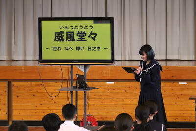 5月12日(日)体育大会が開催される予定です。1年生が入学し、赤団・白団全員が揃いました。保体委員長の甲斐 華蓮さんがスローガン「威風堂々 ~走れ叫べ輝け日之中~」に込められた想いを発表しました。団長・副団長・リーダーの紹介をしたり、応援練習をしたりしました。