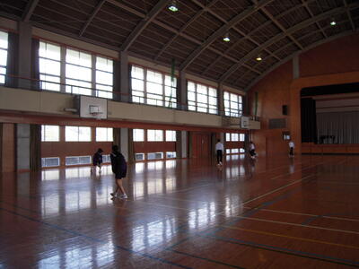 子どもの姿がグラウンドに見当たらないので探してみると、体育館で男子はバスケットボール、女子はバレーボールを楽しそうにしています。人数は少ないのですが、体育館中に笑い声や歓声が響きわたっています。