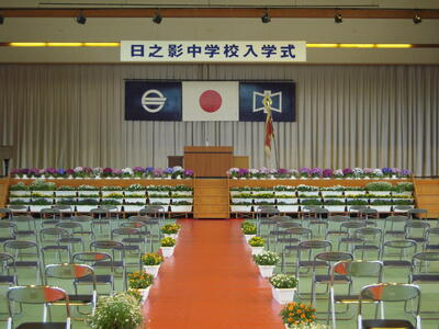 明日は、第78回入学式が午前10時から行われます。「歴史」と「伝統」のある本校に32名の新入学生が入学します。今日は、2・3年生が準備を行い整いました。