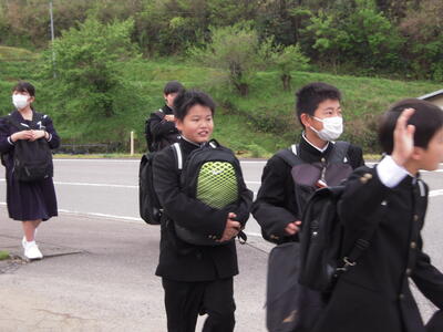 昨日、中学校入学し、初めての登校の様子をお届けします。「はじめの一歩」です。
