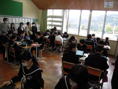 先週は、始業式・入学式がありました。今日から、授業が本格的に始動しました。1年生の社会科は、A組・B組の合同学習です。