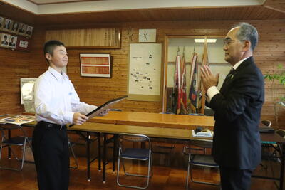 本校2年生の飯干蔵人さんが、町神楽まつり実行委員会様や町教育委員会様から、感謝状を表彰されることになりました。
