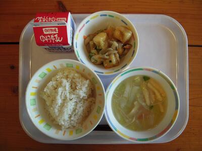 今日の給食献立は、「和風あんかけフィッシュ」「ダイコンのみそ汁」「ご飯」「牛乳」です。