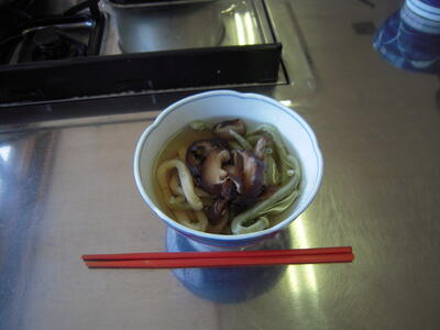 その「うどん調理」のために、昨日に引き続き、衛生管理や調理方法について給食調理員の4名のご協力をいただきながら料理をしました。