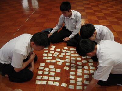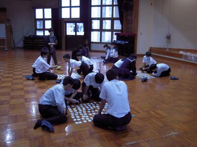 2年生が百人一首に挑んでいます。段々と百人一首を覚え、札をとるタイミングが早くなっています。もちろん、お手つきも見られ、笑いが溢れます。