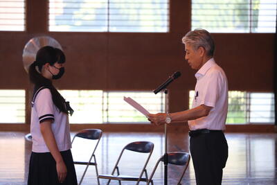 今日で1学期が終わりました。1年生は69日、2・3年生は71日、登校日がありました。この1学期には、入学式、始業式、体育大会、修学旅行、日之影探訪、近未来会議中間発表会など、多くの行事がありました。一つ一つの行事を通して、確実に成長する姿がありました。また、毎日の授業を通して、「できなかったことができるようになった」「分からなかったことが分かるようになった」姿も目にしました。可能性無限大の子どもたちです。学校では学ぶことができないことを家庭や地域等で学び、2学期始業式では、一段と成長した姿を楽しみにしています。