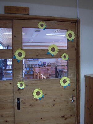 昨日、梅雨明け宣言が出されました。すると、図書室の扉の飾り付けが変わっていました。飾り付けによる季節感を生徒は立ち止まって見ていました。さすがですね。