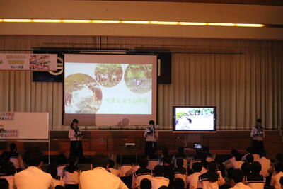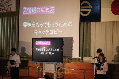 3年生は、2年間で培った学びの集大成とも言うべき学習です。「日之影町」と「私」との関わりの中で、「観光業の活性化」「里山の保全・活用」「農業の振興」について日之影町の支援のもと、その学習成果を発表することができました。当日は、役割分担の急な変更がありましたが、その臨機応変さ(しなやかさ)と、堂々たる姿(たくましさ)が光るすばらしい発表となりました。