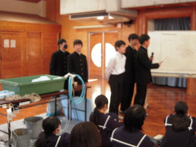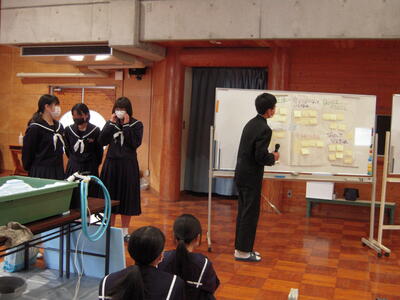 1年生は、五ヶ瀬川の流域治水について学習をしました。講師に、入江先生(宮崎大学教授)、成松様・竹下様(国土交通省)をお招きし、五ヶ瀬町・高千穂町・日之影町・延岡市を流れる五ヶ瀬川について学習しました。治水をどのように進めるのか、一人一人がしっかり考える機会となりました。探究学習の大切な一歩を踏み出しました。