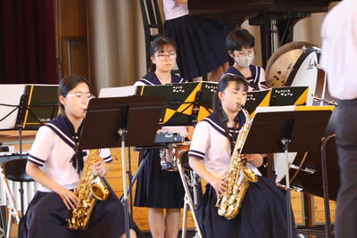 7月13日(土)から宮崎市民文化ホールで開催される「第69回宮崎県吹奏楽コンクール」に吹奏楽部の皆さんが出場します。演奏日時は、7月13日(土)13:32~13:44です。出場するにあたり、その演奏披露がありました。そのコンクールには、ピアノ伴奏で平野寧々さんも参加します。コンクールがとても楽しみです。