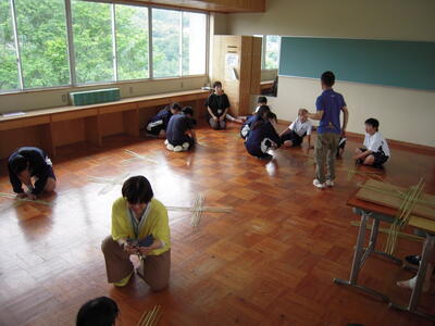 1年生は、5・6時間目に「わら細工」「竹細工」に取り組みました。「わら細工」「竹細工」は日之影町の伝統・文化の一つです。製作活動を通して、伝統・文化に触れることはもちろんのこと、作り手のもの作りの想いや情熱を感じる貴重な経験となりました。