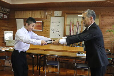 本校2年生の飯干蔵人さんが、町神楽まつり実行委員会様や町教育委員会様から、感謝状を表彰されることになりました。