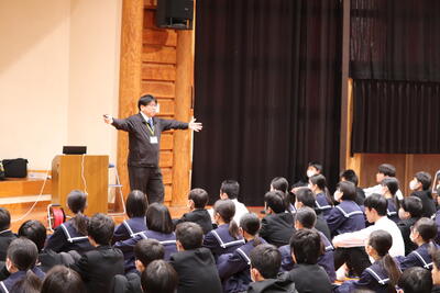 小野 寿雄様(メディア安全指導員)を講師としてお招きし、「ケータイ・スマホ安全教室」を14:40から多目的ホールで実施しました。インターネット等に関するトラブル等について、具体的にお話をしていただきました。
